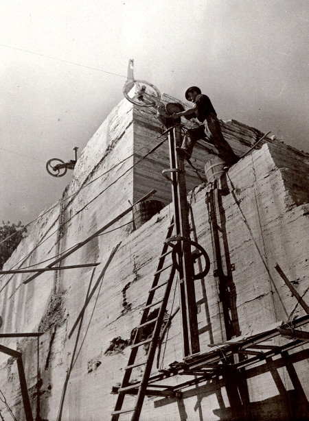 DIAMANTBAR DBH 25 made this possible. It was the first of a series of machines that would later find application outside the stone sector too, as in the demolition of reinforced concrete structures and in the sectioning of foundry waste.